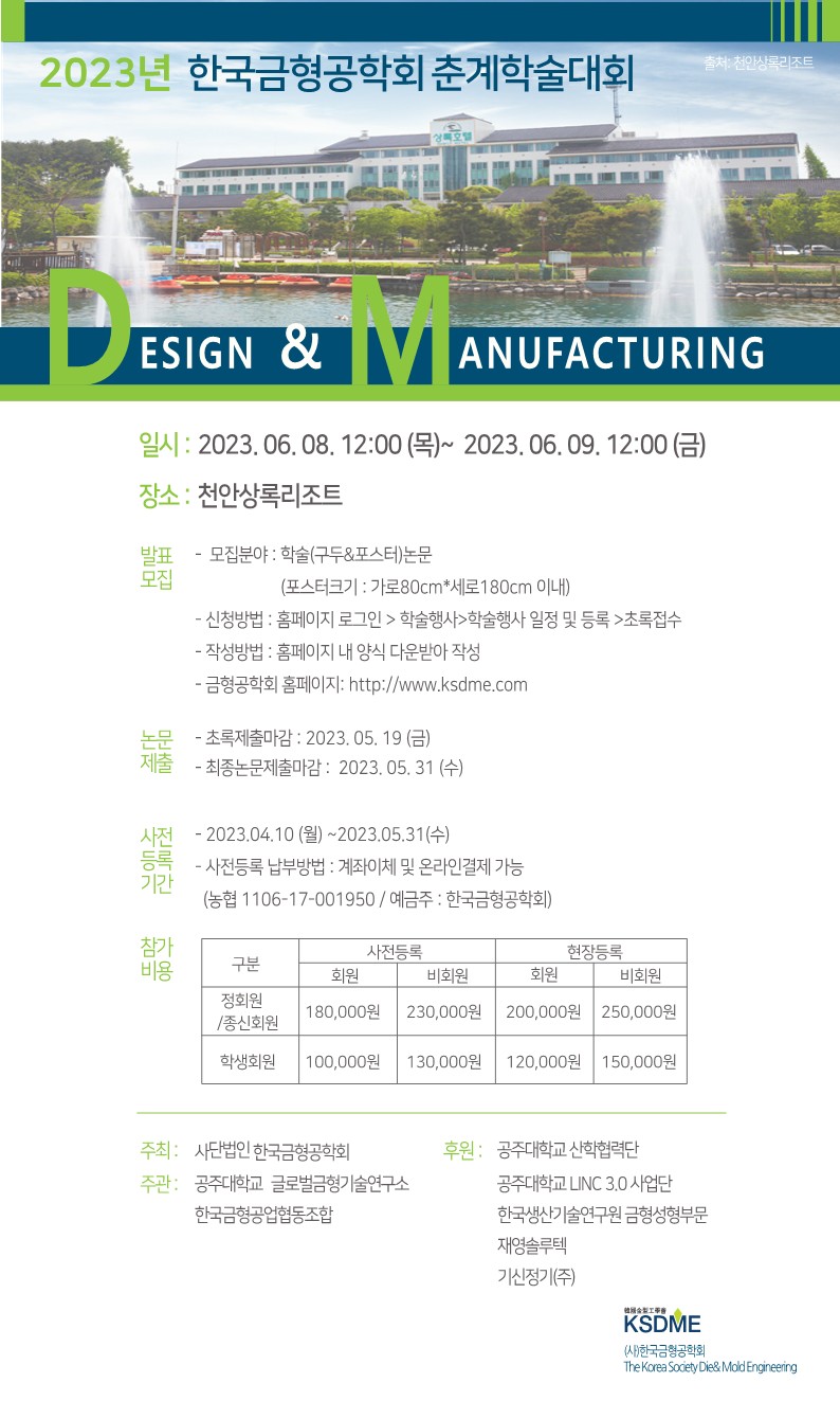 2023년 춘계학술대회 "Design & Manufacturing" 개최 안내